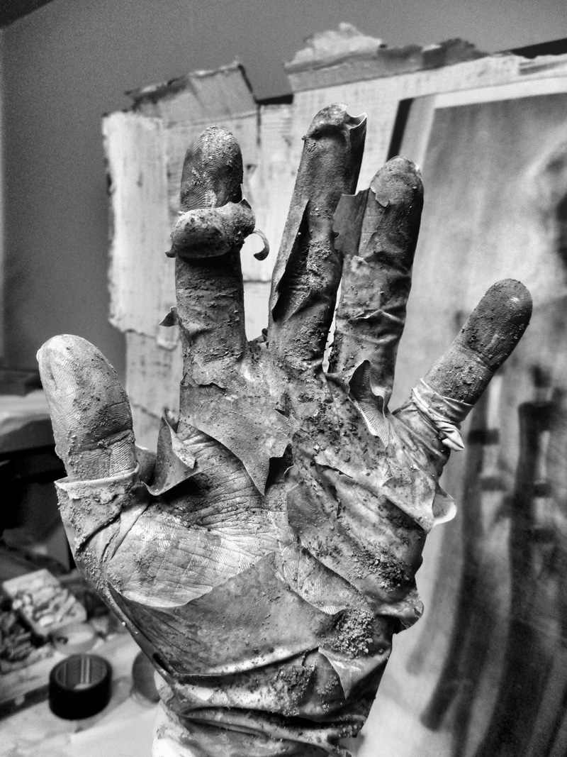 In meiner Fotoreihe „The Working Hand Diary“ (2015) habe ich versucht 1 Jahr lang Fotos von mir selbst und den fertigen Werken komplett zu vermeiden und habe statt dessen jeden Tag ein Foto von meiner Hand gemacht und erforscht, welche Spuren der Kreativprozess am jeweiligen Tag am wichtigsten Werkzeug des Künstlers, seiner Hand, hinterlässt.